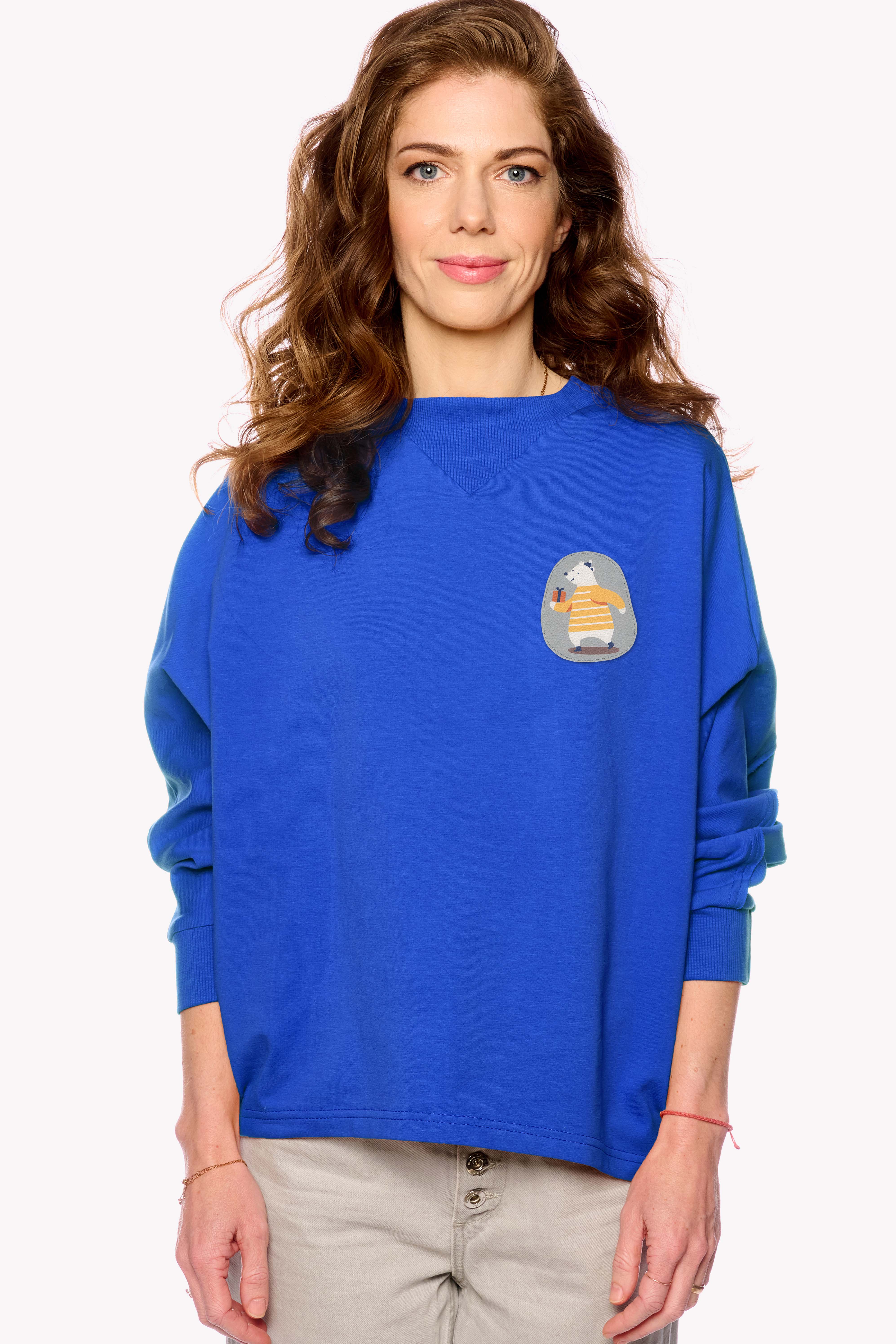 Cropped lenght sweatshirt is shorter than other women's sweatshirts which you can find in our online shop, but still extremely comfortable. The bat style sleeve is designed in a casual 7/8 length. The sweatshirt is decorated with a flattering triangle shape detail on the front.