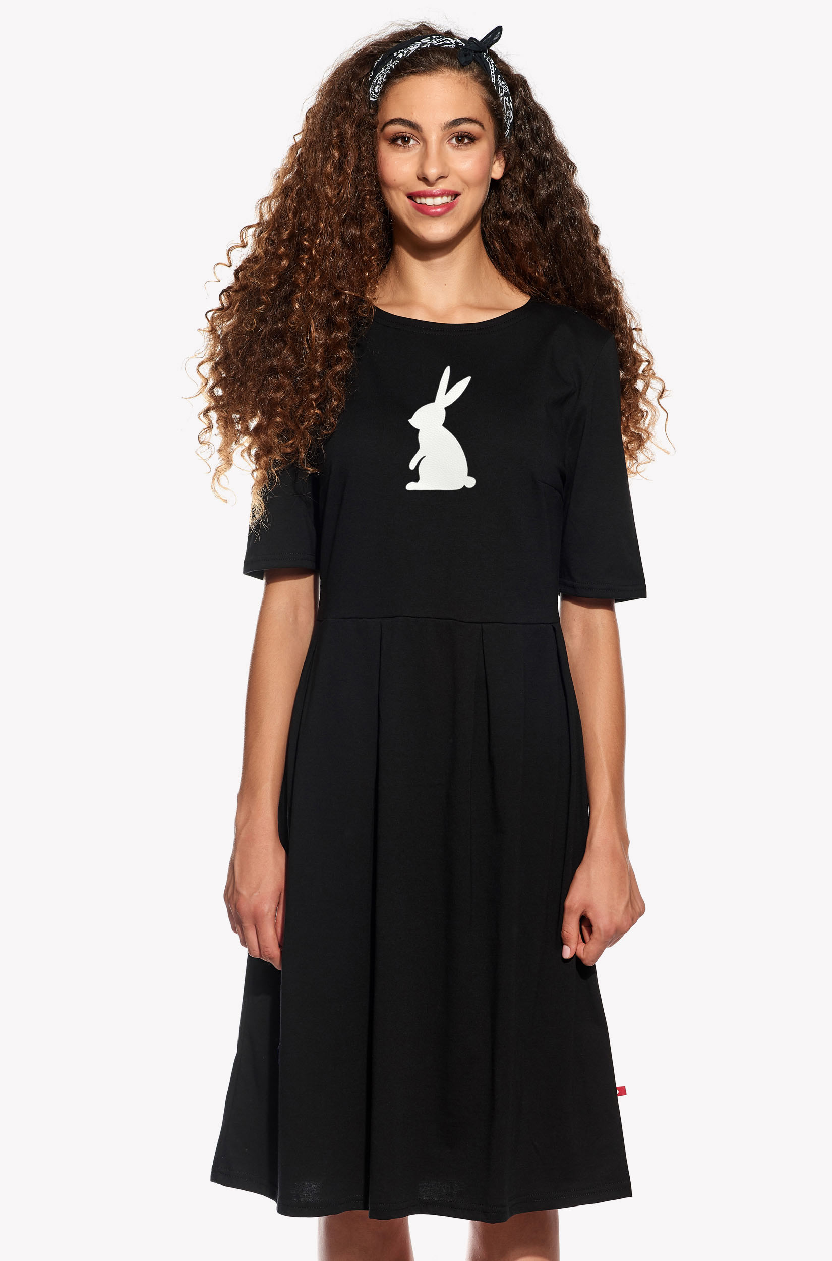 Ležérní šaty mírně empírového střihu se širším 3/4 rukávem jsou jako jediné z naší nabídky přestřižené v pase a tak ve vaší standardní velikosti nepůsobí oversized. V případě, že šaty plánujete nosit oversize a rozhodujete se mezi dvěma velikostmi, zvolte raději o číslo větší.