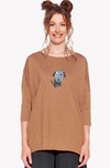 Pokud máte rádi volné maxi tričko, toto je střih určený právě vám. Oversized tričko s 3/4 rukávem. Jeho neformální vzhled podtrhuje nedokončený surový střih, který se po prvním praní mírně roluje. Jemný vzdušný materiál je ideální i v letních měsících.