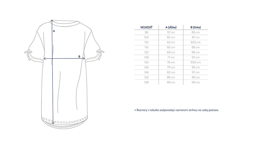 Letní volné šaty rovného střihu, padavé rukávky se vážou na uzlíky. Šaty nemají kapsy. Produkt se může po praní mírně stočit.