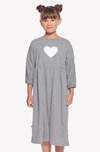 Knee-length girl dress with pleats on the front and back. Comfortable 7/8 lenght sleeves are finished with an elastic band. The dress has pockets.