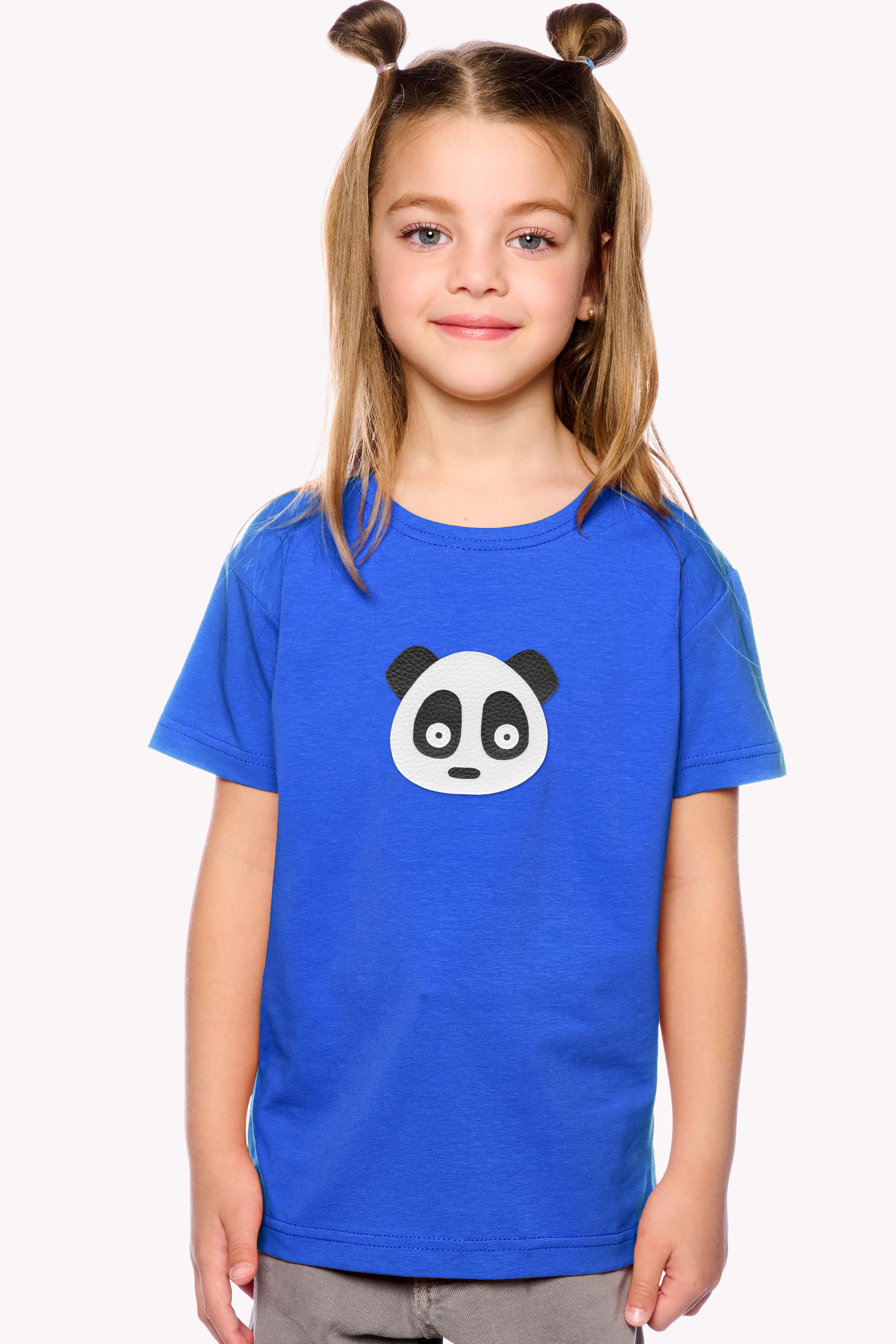 Egy gyermek póló, laza, átlagos szabással és rövid ujjal.