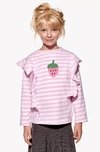 Gyerek póló laza szabással és hosszú ujjú, oldalsó díszítéssel díszítve.