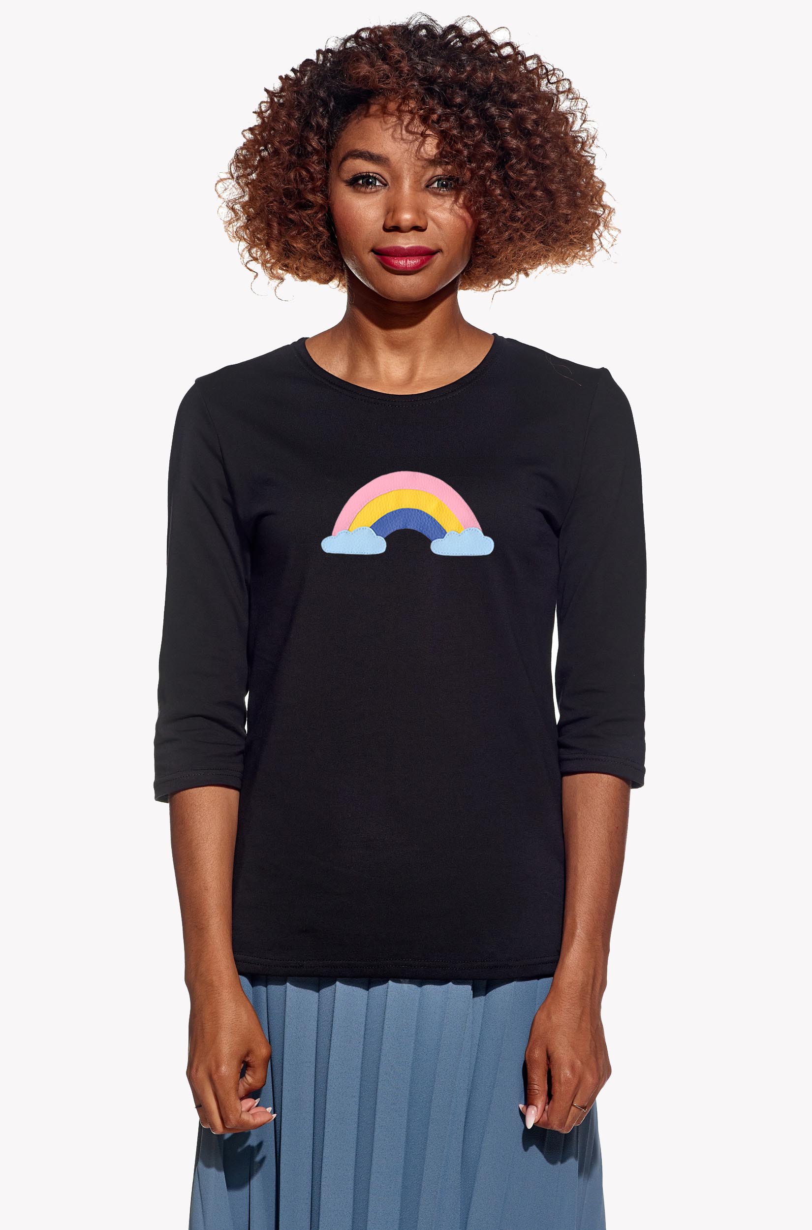 Női póló laza szabással és 3/4-es ujjal.