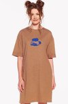 Ez az A-alakú ruha érdekes öltéssel van diszítve amitől az ujjai úgy tűnnek, hogy ki vannak fordítva. A ruha zsebekkel és hosszított rövid ujjal.