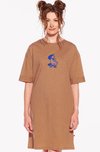 Voľné šaty v Áčkovom strihu zdobí zaujímavý detail šitia, ktorý na rukávoch vytvára “naruby” efekt. Šaty majú vrecká a ležérne dlhšie krátke rukávy.