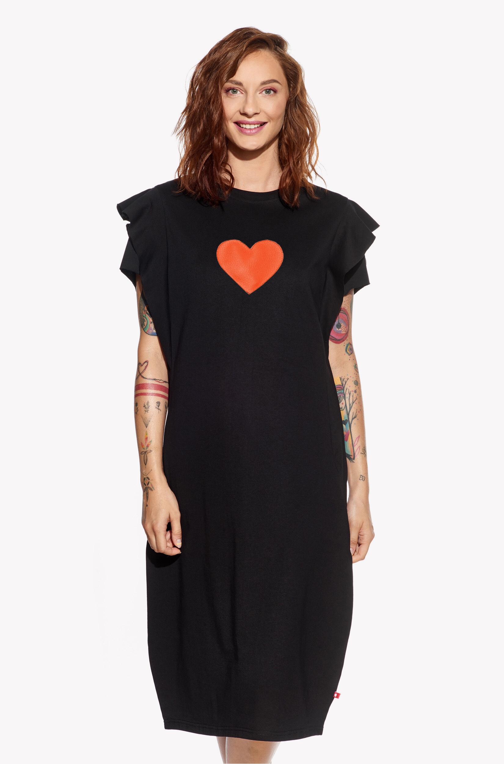 Dlhšie šaty rovného strihu s volánovým rukávom sú alternatívou nášho dámskeho trička, ktoré sme predĺžili pod kolená. Šaty nemajú vrecká.