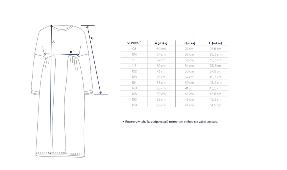 Šaty pod kolená s riasením na prednom aj zadnom diely. Rukávy sú v príjemnej 7/8 dĺžke na konci ľahko stiahnuté do gumičky. Šaty majú vrecká.