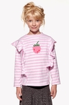 Detské tričko, voľnejší regular strih s dlhým rukávom, dozdobené po stranách volánikom.