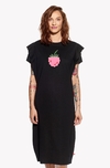 This long straight dress with ruffled sleeves represents an evolution of our women's T-shirt, which has been prolonged to below the knees.