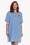 This A-shaped dress is decorated with an interesting stitching detail which gives the sleeves an "inside out" look. The dress comes with pockets and casually prolonged short sleeves.