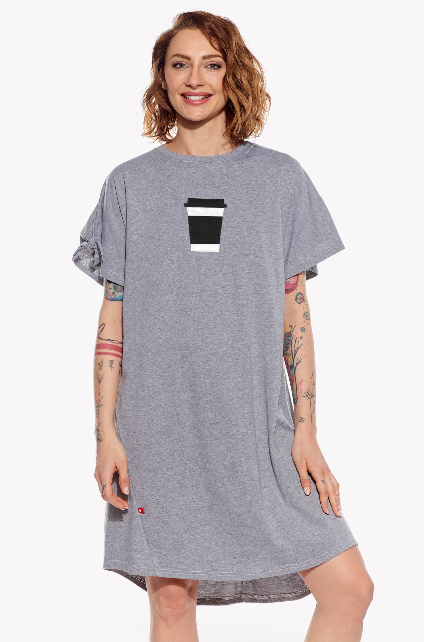 A loose summer dress in a straight cut, with loose sleeves tied with knots. No pockets. The product may twist slightly after washing.