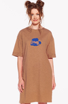 This A-shaped dress is decorated with an interesting stitching detail which gives the sleeves an "inside out" look. The dress comes with pockets and casually prolonged short sleeves.