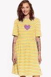 This casual dress with a semi-empire silhouette and loose 3/4 sleeves is the only dress in our portofolio with a cut waist, which makes it not look oversized in your regular size. If you do, however, decide to wear it as an oversized dress, choose the larger of the two sizes closest to your actual size.
