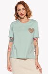A basic women's T-shirt with short sleeves.