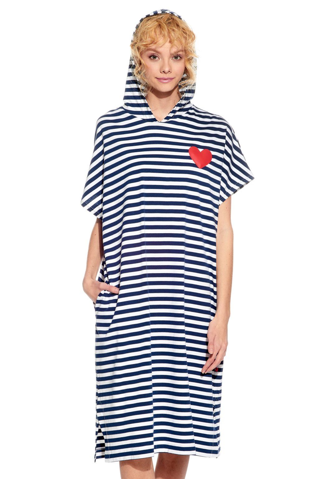 Dámské Pončo, Tmavomodrý proužek, Srdce, Pískací