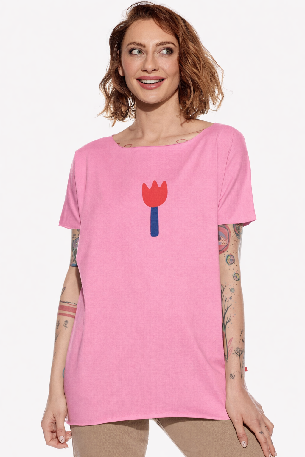 Ela, Dámske tričko oversize, Rúžové, Kvet