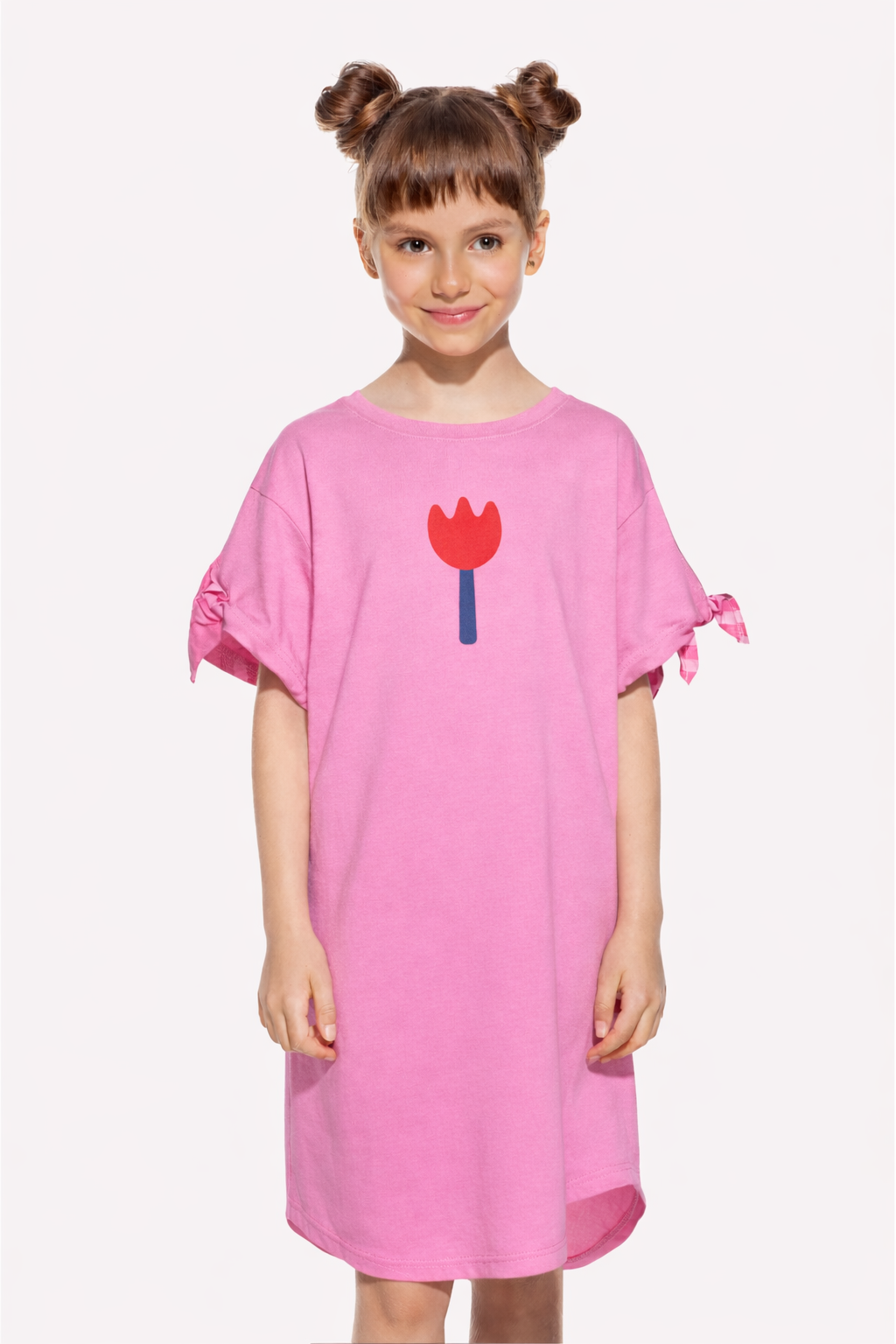 Letní volné šaty v rovnom střihu, splývavé rukávky se vážou na uzlíky. Šaty nemají kapsy. Produkt se může po praní mírně stočit.