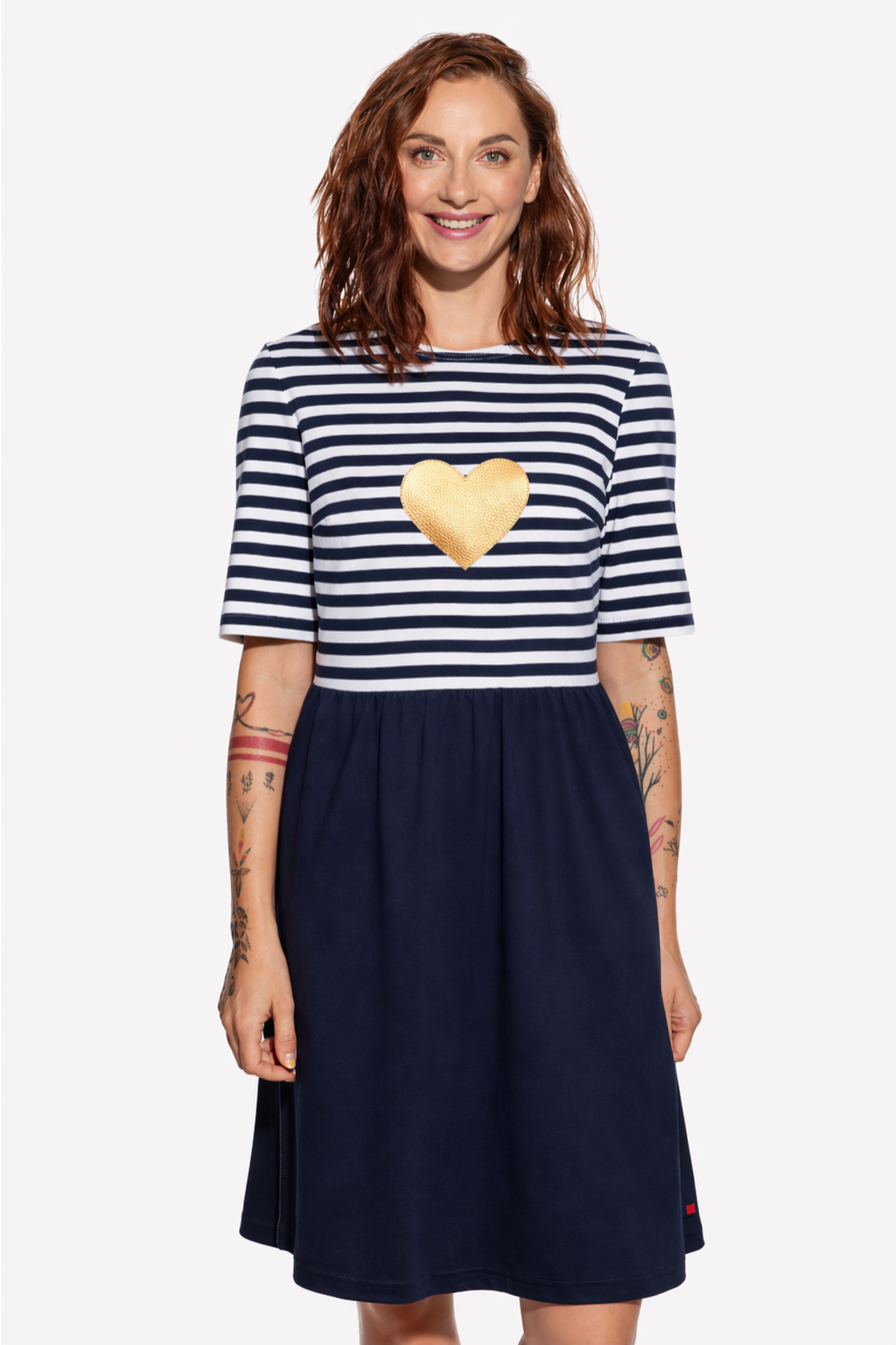 Valentína, Dámske šaty, Tmavodmodrá a tmavodmodrá pásik, Srdce