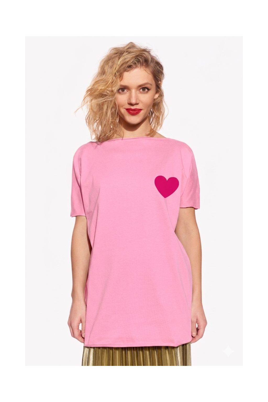 Ela, Dámske tričko oversize, Rúžové, Srdce