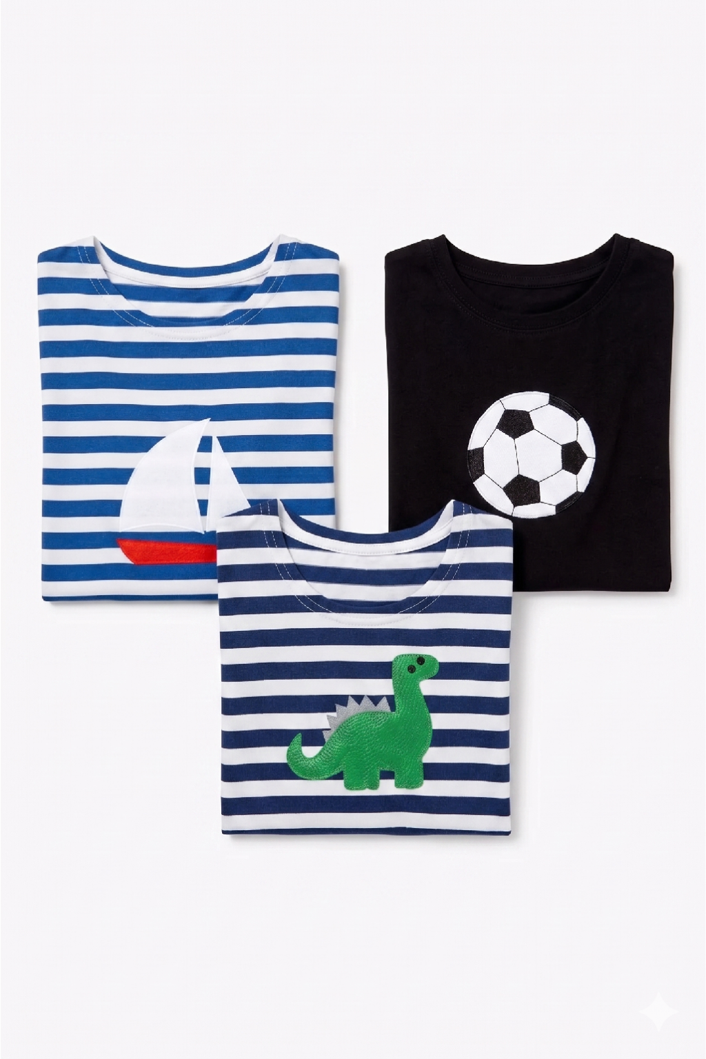 Leo bestseller set, Detské tričko 3x, Pásiky a čierna, Loďka Dino Futbalka