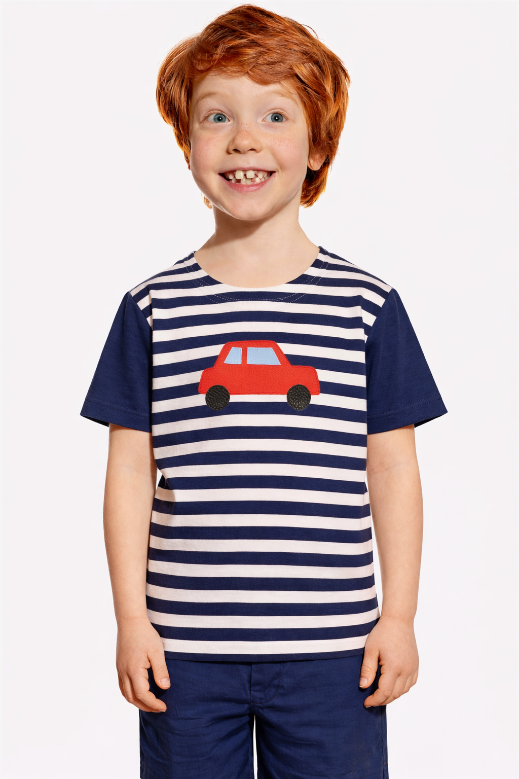 Leo, Detské tričko, Tmavomodrá a tmavomodrý pásik, Červené auto