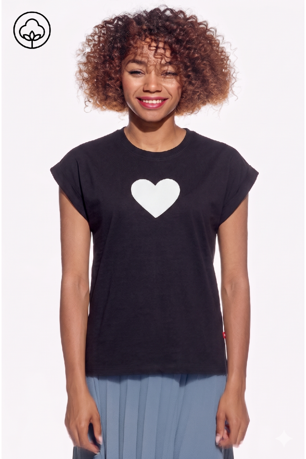 Tamara, Dámske tričko, Čierna Supima, Srdce biele