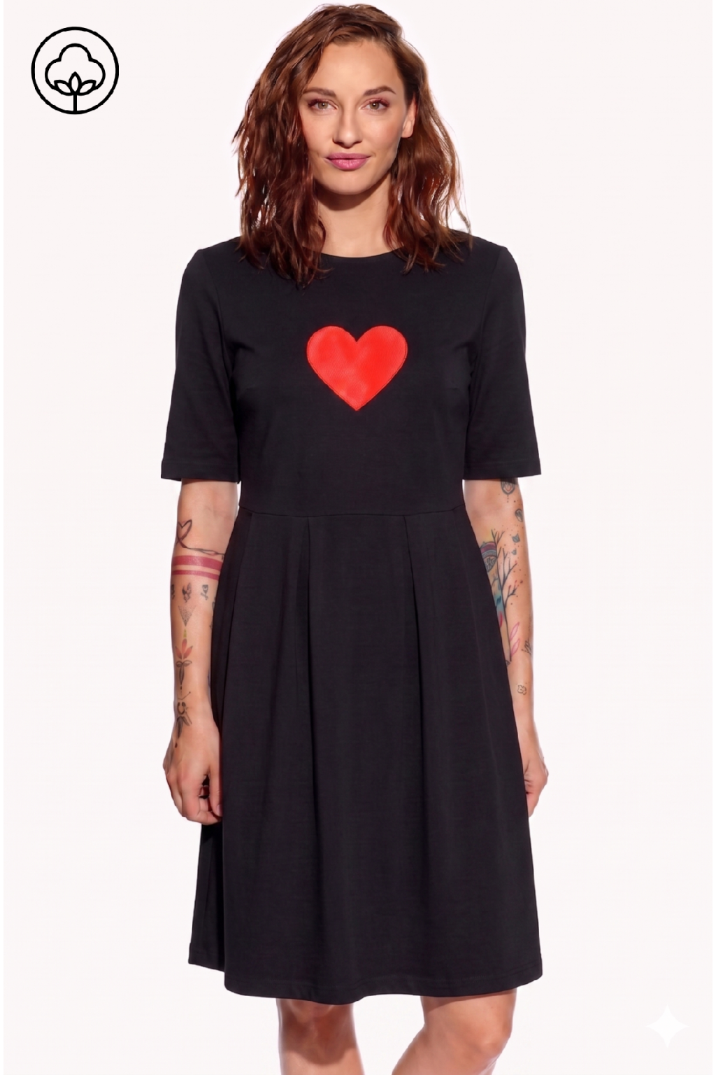 Valentína, Dámske šaty, Supima čierna, Srdce
