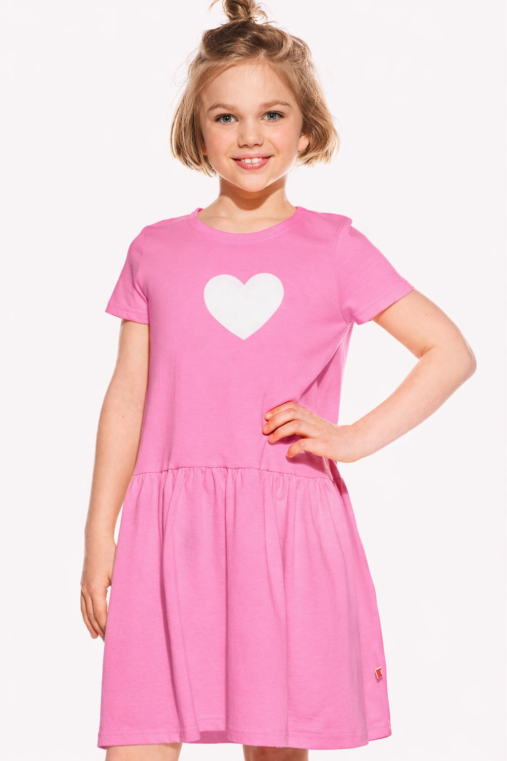 Jemne zvlnený spodok dodáva šatám ľahký a hravý vzhľad, ktorý k detskému oblečeniu prirodzene patrí.